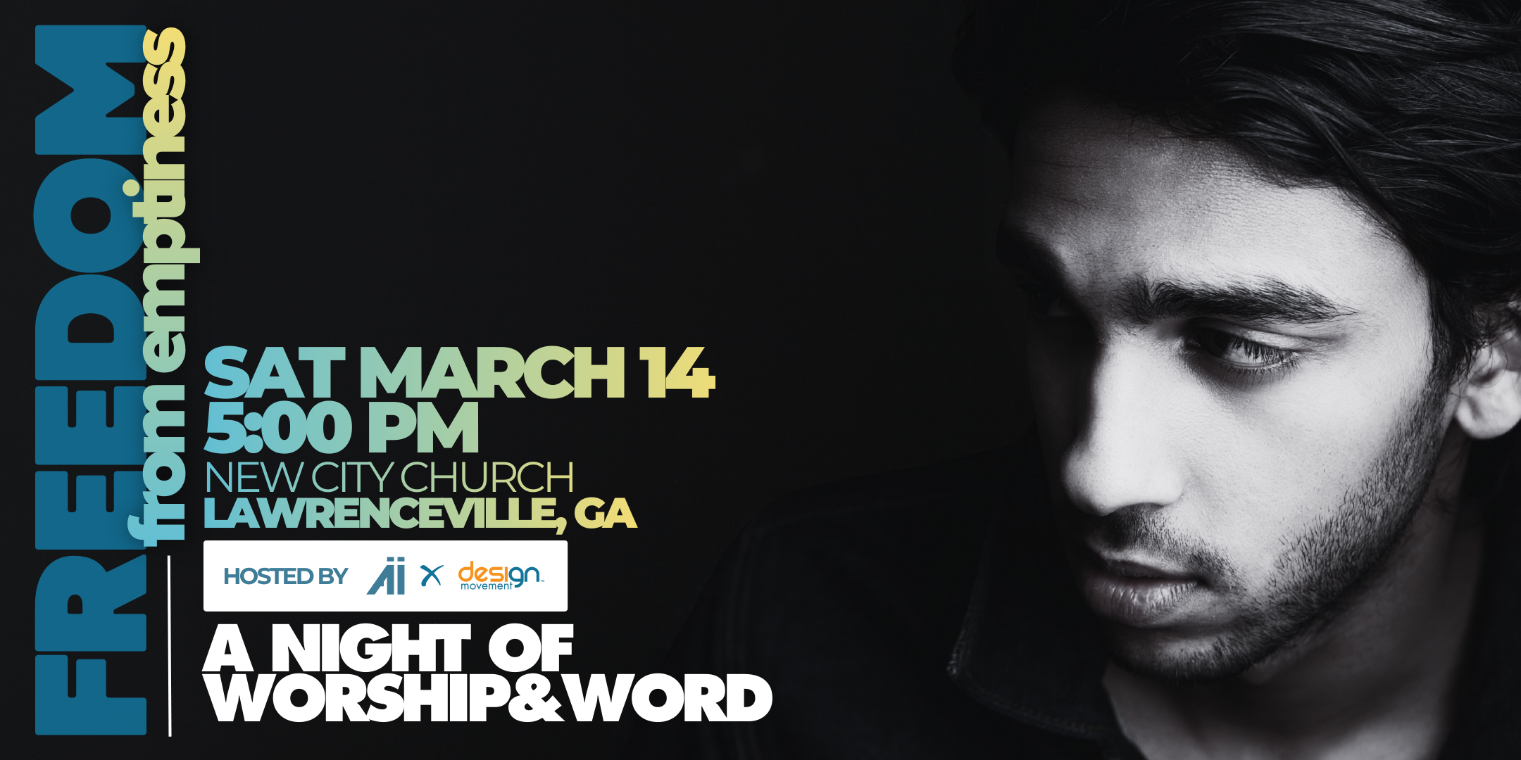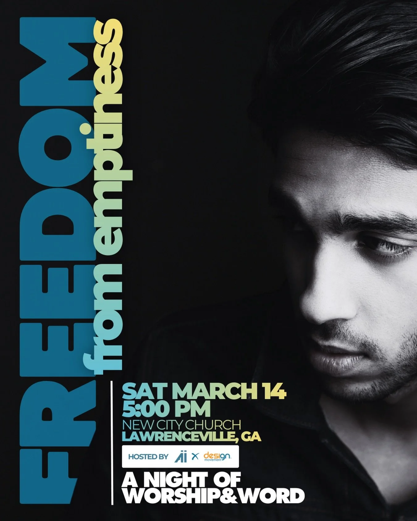 Join Advance x Design Movement for an evening of worship and biblical teaching to uncover how the gospel offers freedom. Our speaker will be Pastor Tony Thomas (Joy of All Nations) and he will be preaching from John 4. Join us on Saturday, March 14th at 5pm.